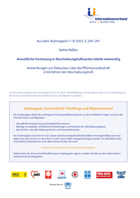 Aus dem Asylmagazin 7 – 8 / 2025, S. 236 – 241 Stefan Keßler Anwaltliche Vertretung in Abschiebungshaftsachen bleibt notwendig Anmerkungen zur Diskussion über die Pflichtanwaltschaft in Verfahren der…