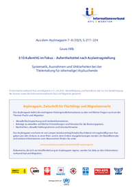 Aus dem Asylmagazin 7 – 8 / 2025, S. 217 – 224 Laura Hilb § 10 AufenthG im Fokus – Aufenthaltstitel nach Asylantragstellung Systematik, Ausnahmen und Unklarheiten bei der Titelerteilung für…